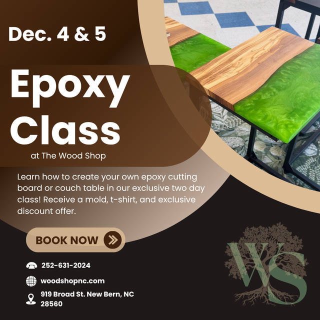 During this class you will learn the proper methods and techniques to create a cutting board, use epoxy, and learn how to properly use a sander! You will receive a mold that you can take home, a Wood Shop t-shirt, and get a one-time discount to use to purchase products for you to take home! This is a great class for beginners or those who want to freshen up their skills.